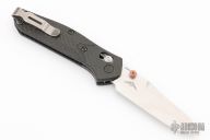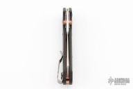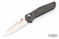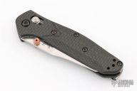 The Benchmade Osborne 945-2 is the same beloved Osborne design that has made the 940 a titan of the industry, but it's been shrunk down to a more comfortable size for everyday carry. The knife is made of CPM-S90V steel, and has a black carbon fiber handle with stainless steel liners. Has a custom copper backspacer, copper thumbstuds and a deep carry stainless steel pocket clip. It locks open with the proven, ambidextrous AXIS lock. Comes with original clip, thumbstuds and barrel spacers. Comes with original box and papers. Excellent condition.