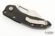 This Stitch Auto by Microtech Knives features a stonewashed blade and false top edge, notched thumb and finger rests. The handle has a black anodized and milled aluminum handle with a bead blasted titanium backspacer and a bead blasted stainless steel clip, tip up carry, lanyard hole at the butt. Comes with original box and papers. S/N of 8877 and dated 01/2022. Excellent Condition.