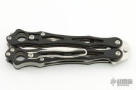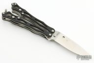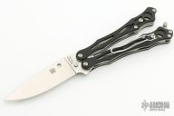 This Spyderfly 2 Balisong by Spyderco has a satin finished blade. Handle is black G10 over stainless steel liners and stainless steel paper-clip style pocket clip. Comes with original box.  Excellent condition.