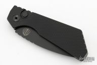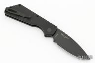 This Pro-Strider PT by Pro-Tech and Strider Knives features a black blade with notched thumbrest. The handle has a black textured aluminum frame with black hardware and black stainless steel tip up clip. Comes with original box and papers. New from Maker!