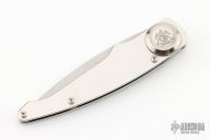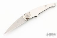 This Paul Perfecto from Lone Wolf Knives features a wharncliffe bead blast blade. The The handle is comprised of stainless steel frame and barrel spacers. Knife features the Paul Pivot Lock. Excellent condition.