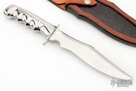 This knife is completely integral, mirror polished, .220" bladestock, 1.530" blade depth, integral construction. Excellent condition. Comes with a brown leather sheath with alligator skin inlay.