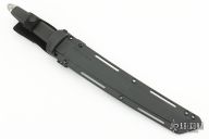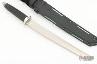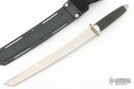 This Magnum Tanto XII by Cold Steel with San Mai VG1 blade in satin finish. Guard and pommel are stainless, .188" blade stock and 1.165" blade depth, hidden tang construction. Handle is textured Kraton for a sure non-slip grip. Lanyard hole and glass breaker. Comes with Secure-Ex sheath with a nylon belt loop and original box. Excellent condition.