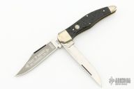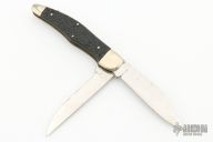 This knife features two mirror polished blades with "Tree Brand 2020" etched on blade. The handle has nickel silver bolsters, faux jigged bone scales, brass liners and stainless steel springs. Has scratches and rust otherwise the knife is in okay condition.