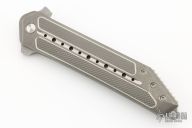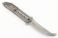 Todd Begg Knives is happy to announce the formation of the new Steelcraft Series with the release of the first full production knife, The Sun Tzu Kwaiken. With the Sun Tzu Kwaiken they have joined forces with Reate Knives to bring you the highest quality in design and function that they feel is attainable in a production knife. All of the Steelcraft Series knives will be designed with an emphases on precision workmanship to showcase that a production knife can truly be a thing of excellence. They have made all the necessary steps to insure that Steelcraft will deliver a knife that will stand up to scrutiny and surpass all prior experience of what a production knife can be. 6Al4V titanium handle CPM-S35VN blade steel Framelock with steel lock tip insert 3D machined pocket clip Ceramic detent Ceramic IKBS Design won “Best Tactical Folder” at the 2014 Knifemakers Guild show. Excellent condition. Comes with original box and papers.