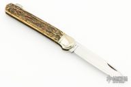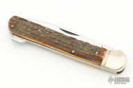 This vintage lockback by Hubertus features a spear point blade, nickel silver bolsters, stag scales, and brass liners and pins. Nice lockup. Has some light scratches, otherwise excellent condition.