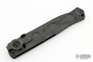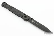 This SOCP 4.5 by Benchmade features a black blade with false top edge and a thumbdisc. The handle has black FRN scales, black stainless steel liners and clip, 4-way reversible. Has a couple light scuffs, otherwise excellent condition.