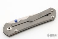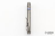 This Large Inkosi from Chris Reeve Knives features a tumble finished drop point blade with dual anodized thumb studs and notched thumbrest. The handle has a bead blasted and laser engraved titanium frame over a single barrel spacer with a matching bead blasted titanium tip up clip. Includes original box, paperwork, tools, cloth, and leather slip. Maker's card dated March 16, 2023. Has a scuff on the clip. Excellent condition otherwise.