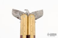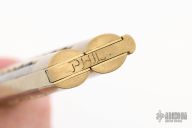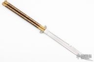 Talk about a balisong... This bali features a .229" thick blade with a satin finish. The blade is 15.75" long. The handles are made of brass channel construction with brass bolsters, front and rear, wood and brass scales, brass T-latch. Has some scratches, oxidation and patina, otherwise good condition.