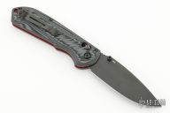 The FREEK, by Benchmade, features a drop point CPM-M4 steel blade with a black finish, dual thumb studs and a notched thumb ramp. The handle is composed of black/grey G-10 and red G-10 liners, black tip up reversible stainless tip pocket clip. Includes original box and papers. Excellent condition.