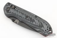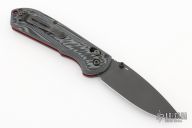 The FREEK, by Benchmade, features a drop point CPM-M4 steel blade with a black finish, dual thumb studs and a notched thumb ramp. The handle is composed of black/grey G-10 and red G-10 liners, black tip up reversible stainless tip pocket clip. Includes original box and papers. Excellent condition.