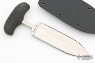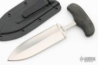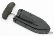 This Safe Keeper I Push Dagger from Cold Steel features a 5" double-edged dagger blade with satin finish, .187" blade stock, 1.427" blade depth. Textured rubber handle. Nice feel in the hand. Comes with a kydex sheath with clip. Has a spot on the blade, otherwise excellent condition.