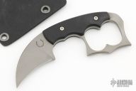 This Malice Karambit by Redhorse Knives features a bead blasted hawkbill blade with .187" blade stock and 1.480" blade depth, full tang construction with black G-10 scales. Comes with a kydex sheath. Excellent condition.