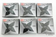 Honshu has done it again! You only get the best and most innovative with them. This throwing star is a perfectly balanced piece that has a sleek and modern feel. It is constructed of 1065 high carbon steel with a black oxide coating. It is 5 1/2" in diameter and comes with a sturdy nylon sheath with a belt loop.