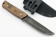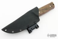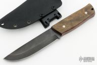 This Butcher by Black Knight Blades features a black drop point blade with a full tang construction. .200" Blade Stock. 1.353" Blade Depth. The handle has dyed wood scales. Includes a kydex sheath. New from maker!