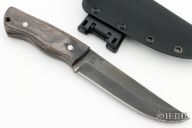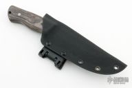 This Butcher by Black Knight Blades features a black drop point blade with a full tang construction. .200" Blade Stock. 1.353" Blade Depth. The handle has wood scales. Includes a kydex sheath. New from maker!