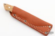 This Mini Canadian from Bark River knives features a drop point satin finish blade with .145" blade stock and .882" blade depth. The handle is comprised of burl wood scales with red liners over full tang construction. Includes a brown leather sheath with belt loop. Excellent condition.