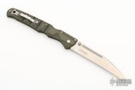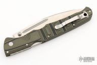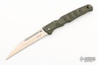 This Frenzy by Cold Steel features a satin finished blade with fullers and dual thumbstuds. The handle has black/green G-10 scales with stainless steel and black backspacer. Tip up reversible stainless steel clip. Comes with original box. Excellent condition.