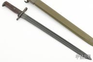 Designed for use with the Model 1903 rifle, the Model 1905 bayonet replaced the rod bayonet originally designed for this rifle after these were found to be unserviceable. Between 1905 and 1922 the bayonets were made at Springfield Armory and the Rock Island Arsenal. Until 1917 the bayonet had 406mm (16") blade with a 'bright' or polished finish. The handles were blued with two wood grips. In 1917 the blades were blued and in 1918 were parkerised. In 1922 production of the bayonet was halted until resuming again in 1942. Although designed for the Springfield 1903 rifle, it was also used on the 03A3 rifle, as well as the M1 Garand rifle.