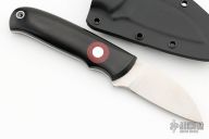 This K-42 Sheepsfoot Compact Personal by Dozier Knives features a satin finished drop point blade with .129" blade stock and .928" blade depth, full tang construction. The handle has black G-10 scales with a red linen micarta insert, aluminum pins and lanyard hole. Comes with a kydex sheath with belt clip. New from maker.