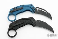 Reat Knives is making yet another splash with the EXO-K Gravity Karambit Knife. That's right: it's both a Karambit and a Gravity Knife. By holding down the button and flicking your wrist, the blade and frame will rock back and forward again, deploying the wickedly-curved blade into the open position where it locks. Push the button again and reverse the steps to close the knife. Thanks to its reversible pocket clip, you can carry it to your preference. And speaking of preferences, finger rings aren't for everyone. In the case of EXO-K, it's removable! Like any good trick, operating this attention-grabbing knife will take some practice—which can be done safely with the included blue trainer—but once you have it down, you'll be flipping this bad boy into action. It's great for day-to-day cutting, fidgeting, and self-defense situations. The Reate EXO-K takes pocket knife fun to a new level with an innovative, practical, and entertaining design. It's built to Reate's exacting quality standard with tough and affordable materials, like aluminum and Bohler N690 steel, to keep the cost down. The EXO-K is truly a knife like no other.