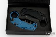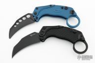 - Hawkbill-style Karambit blade made from black PVD Bohler N690 steel.