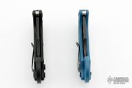 - Ceramic-coated black aluminum handle scales with frag-texture milling and a titanium backspacer.