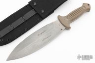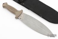 This Combat Smatchet by Boker features a double edged tumble finished blade, .173" blade stock and 2.795" blade depth, full tang construction. The handle has black canvas micarta scales. Comes with a black nylon sheath with a belt loop. #039/199 on blade along with "Rex Applegate  W.Z. Fairbairn". Excellent condition.