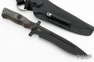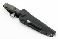 Made out of 0.31" thick 1075 carbon steel, the differentially heat treated blade will be impact resistant on the edge with a very strong spine. The handles start with black canvas Micarta on the bottom sandwiched with black G10 on top that has a great texture for grip. The entire handle is also over 1" thick once assembled to fill out the user's hand much like an axe or hatchet handle would.