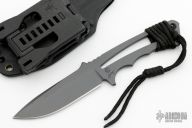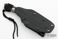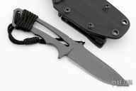 The Professional Soldier is a collaboration with designer Bill Harsey. Has a black PVD coated blade and handle with notched thumb rest and finger grooves, .166" blade stock and 1.075" blade depth. Comes with a kydex sheath. Has a few light scuffs, otherwise excellent condition.