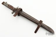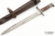 US BAYONET FOR M1903 SPRINGFIELD / KRAG RIFLE. Includes a brown leather sheath. Good condition for its age.