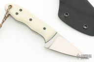 This knife by David Lancaster Clark features a hand rub satin finished blade with .122" blade stock and 1.017" blade depth, full tang construction with G-10 scales with black G-10 liners. Comes with a kydex sheath. New from maker.