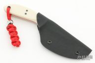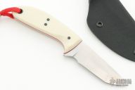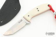 This knife by David Lancaster Clark features a hand rub satin finished blade with .119" blade stock and .862" blade depth, full tang construction with G-10 scales with red G-10 liners. Comes with a kydex sheath. New from maker.