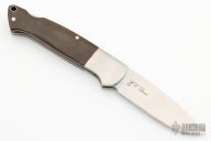 This Davis Classic Hunter by Boker is a WC Davis design, it features a satin finished blade with nail nick. The handle has satin finished stainless steel bolsters, liners and backspacer with green canvas micarta scales and red liners. Comes with original box and papers. Excellent condition. # 247