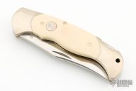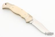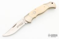 This knife by Boker features a satin finished clip point blade with nail nick. The handle has a nickel silver frame with white inlays. Comes with original box and papers. Excellent condition.