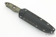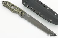 This ERT by Brian Hoffner features a black tumble finished blade with notched thumbrest, .358" blade stock and 1.128" blade depth, full tang construction with G-10 scales. Coems with original box and sheath. Excellent condition.