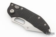 This Stitch Auto by Microtech Knives features a stonewashed blade and false top edge, notched thumb and finger rests. The handle has a black anodized and milled aluminum handle with a bead blasted titanium backspacer and a bead blasted stainless steel clip, tip up carry, lanyard hole at the butt. Comes with original box and papers. S/N of 13029 and dated 04/2023. Excellent Condition.