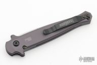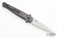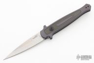 This Launch 8 by Kershaw is a Matt Diskin design, it features a stonewashed blade. The handle is dark grey aluminum with a carbon fiber inlay and a tip up reversible black stainless steel clip. Comes with original box and papers. Excellent condition.
