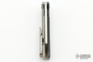 - Durable titanium frame lock handle with a steel lockbar insert and tip-up carry pocket clip.