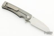 The Chaves Knives Sangre Street flipper is part of the Ultramar series, a production line made by Reate to bring Ramon's exceptional custom designs to a wider audience. It comes equipped with an aggressive wharncliffe style blade that deploys effortlessly on ball bearings. An ergonomic titanium frame lock handle provides a comfortable grip and absolute blade lockup. The Sangre Street comes outfitted with a signature Chaves skull pocket clip for secure everyday carry.