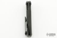 This Chaves Liberation features a black finished drop point blade with the Chaves logo and dual thumbstuds. The handle is composed of carbon fiber and black finish titanium with a matching tip up titanium pocket clip. Comes with original box and extra clip. Excellent condition.