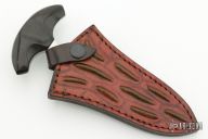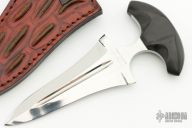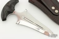 This Bush Dagger by Down Under Knives has a mirror polish blade with fullers, .205" blade stock and 2.068" blade depth, hidden tang construction. Ebony handle and custom leather sheath. Comes with original box. Excellent condition.