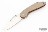 This Avant liner lock by Luft Concepts features a satin finished drop point blade with a large thumbhole.  The handle features micarta scales over bead blasted liners and backspacer with a stainless steel tip up pocket liner.  Includes a padded zippered case and papers. Serial # 18.  Nice detent, lock up and blade seating.  Excellent condition.