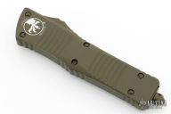 This Combat Troodon OTF automatic features a cerakote finish OD Green coated D/E blade with one fully serrated edge. The handle is composed of a OD aluminum frame. Stainless steel clip. Glass breaker. 06/2018, S/N 20002. Comes with original box and papers. Excellent condition.