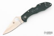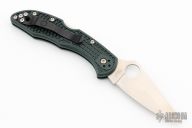 This Spyderco Delica 4 knife has a British Racing Green FRN handle and a premium ZDP-189 stainless steel blade.