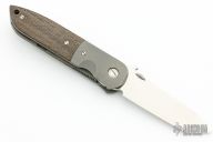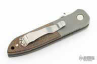 This Left Handed Custom CQC-6 by Emerson features a left hand chisel ground tanto blade with a satin finish, thumbdisc, wave feature and notched thumbrest. The handle has bead blasted titanium dovetailed bolsters and titanium liners, green canvas micarta scales, black G-10 backspacer, and a tip up stainless steel clip. Comes with original box and papers, a black Emerson clip, and a zippered case. Nice detent, lockup and blade seating. Has some light scuffs, otherwise excellent condition. This knife is 4 of only 5.