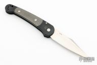 This Monaco by Pro-Tech Knives features a satin finished clip point blade with swedge. The handle is comprised of a black anodized aluminum frame with carbon fiber inlays. No clip. Has a couple light scuffs, otherwise excellent condition.