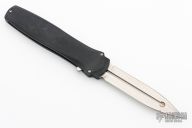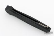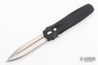 This is a Dark Angel single action out the front auto by Pro-Tech Knives features a satin finished double edged blade and black anodized aluminum handle. Black stainless steel clip. Safety switch. Has scuffs and scratches, great condition otherwise.