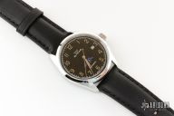 Built from a 316L stainless steel case, the Glycine Combat Classic 40 “Moon Phase” Blue Ref. GL0385 comes with perfect dimensions truly fitting for a watch with such a dressy character. Measuring in with a tasteful diameter of 40mm and a slim case profile of only 12.2mm thick, you can expect an elegant appearance on the wrist, sliding under a cuff easily. Combining an intricate mix of skilful finishes, fine satin brushing on the case beautifully transitions to a smoothly polished bezel for a sophisticated, well-refined appeal. The watch is paired with a 22mm brown leather strap worn with a steel tang buckle.
