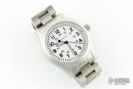 42mm matt stainless steel case, three hand display, white dial with light, luminescent numerals, indexes showing hours and minutes, stainless steel bracelet: The new Khaki Field Mechanical is a faithful recreation of its original 1960s forebear and is true to Hamilton’s military heritage. Inspired by the military, built to last, this is the original soldier’s watch.